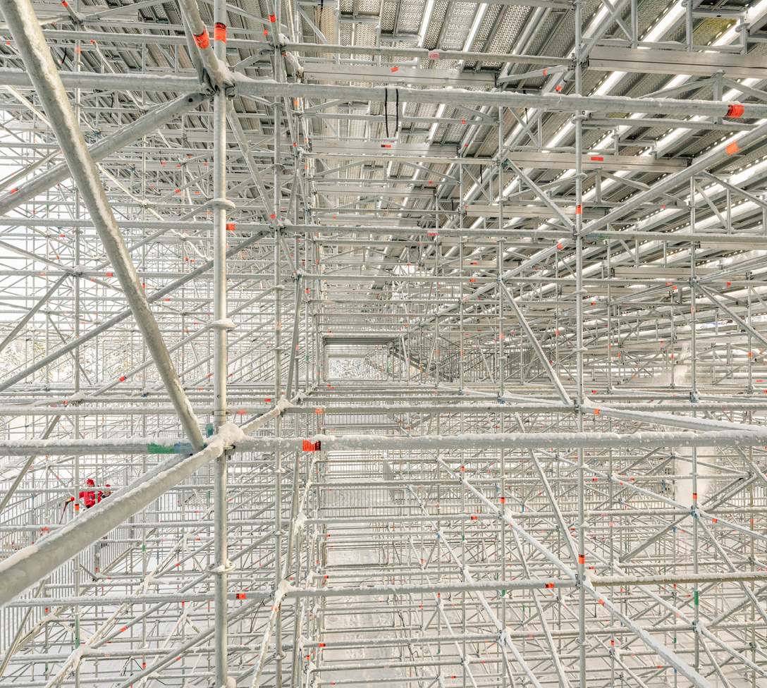 Materialsparende Unterkonstruktion aus AllroundGerüst in der Lightweight-Technologie mit integrierten Laufwegen.