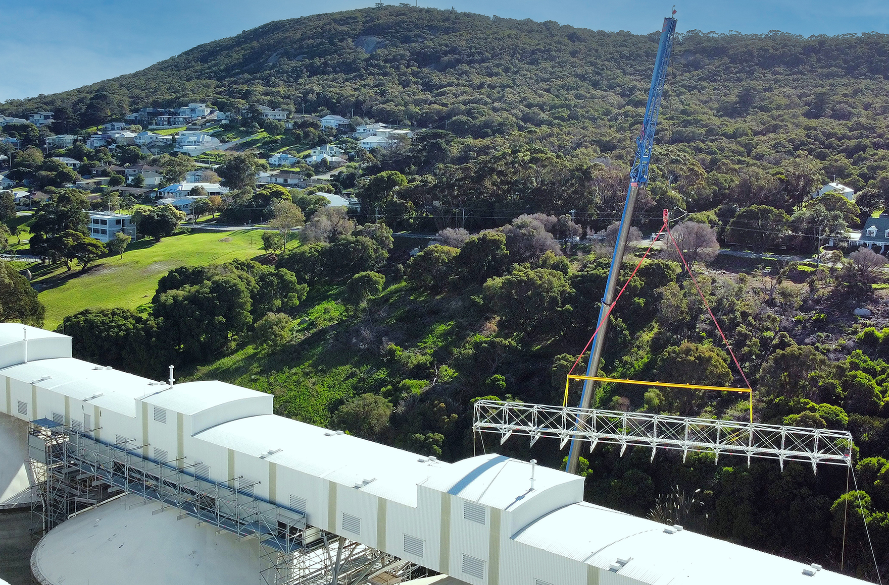 Die Layher Anwendungsingenieure planten die Gerüstkonstruktion digital in 3D mithilfe von LayPLAN CAD vor. Die Lösung ließ sich so optimal an die Gegebenheiten vor Ort – wie die hohen Windlasten – und die Geometrien anpassen. Kollisionen wurden dadurch vermieden.