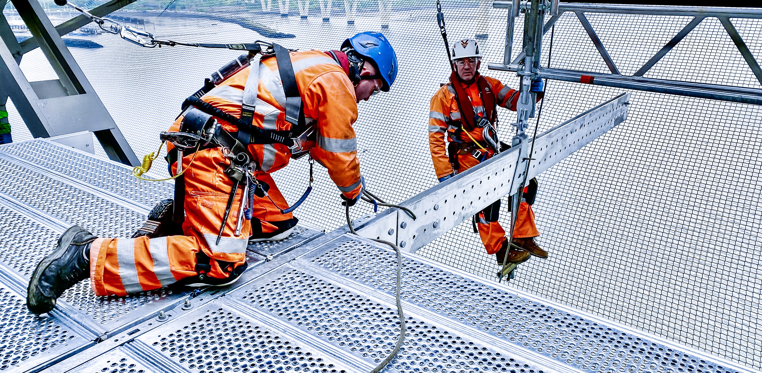 Verbesserung der Arbeitssicherheit im Aufbau durch die AutoLock-Funktion im AllroundGerüst.