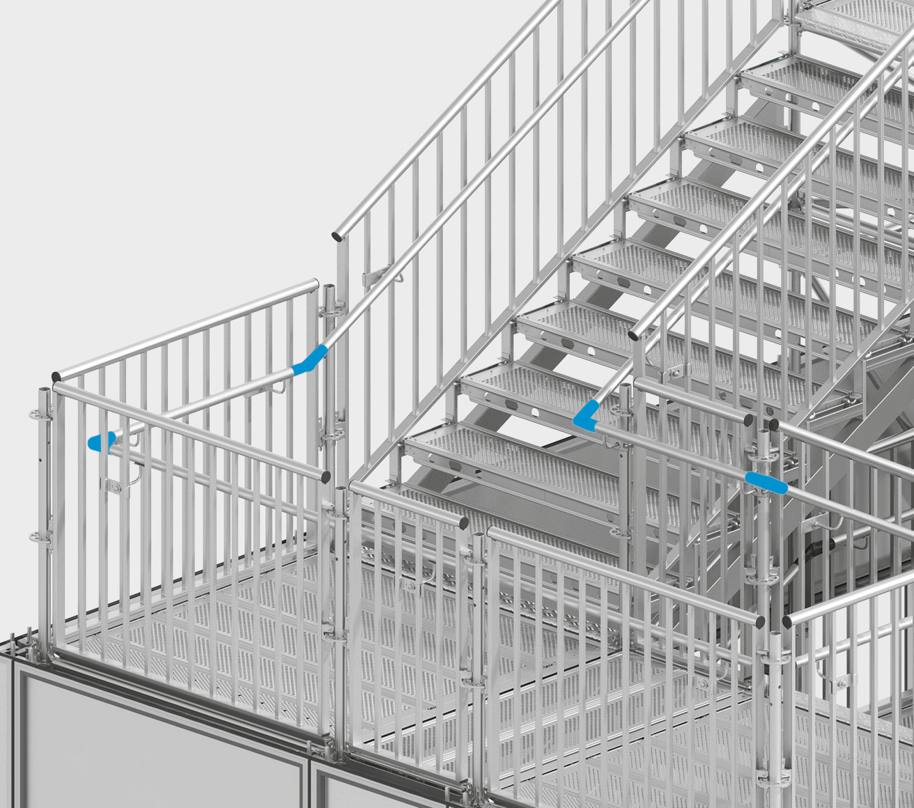 - Verwendbar bei allen Layher Treppenmodellen mit kindersicherem Geländer