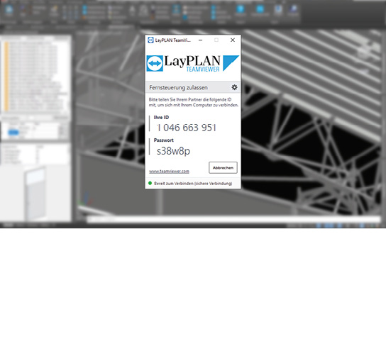 Der LayPLAN TEAMVIEWER ist ein kostenloses Tool, mit dem der Anwender bei Problemen oder offenen Fragen auf einen bestmöglichen und direkten Support zurückgreifen kann.