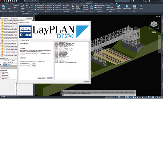 Für den statischen Nachweis von Gerüstkonstruktionen werden üblicherweise Stabwerkprogramme herangezogen. Mithilfe des Moduls LayPLAN TO RSTAB können alle zur Modellierung relevanten Informationen einer AllroundGerüst-Konstruktion dreidimensional mit allen statisch relevanten Informationen in das Stabwerkprogramm RSTAB von Dlubal importiert werden. Durch die automatisierte Übertragung der Informationen wird eine erneute Eingabe der Modelldaten überflüssig. Dadurch profitiert der Anwender von einer enormen Zeitersparnis und kann zusätzlich mögliche Fehlerquellen bei der Modellierung vermeiden.