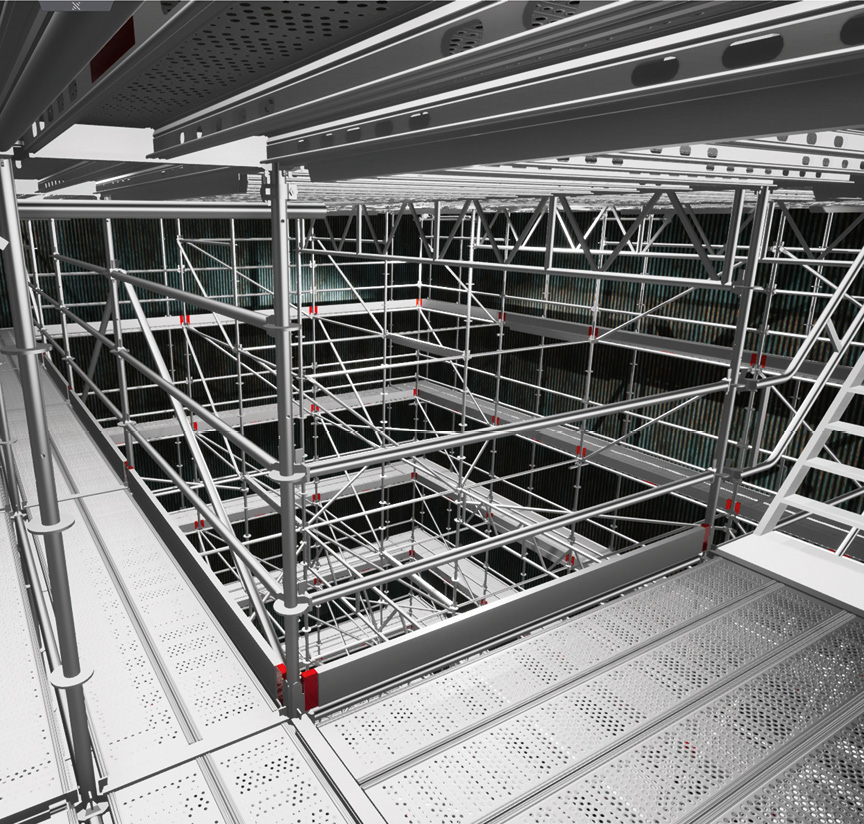 Mit dem kostenlosen LayPLAN VR VIEWER ist eine virtuelle Begehung von Gerüstkonstruktionen möglich, wodurch sich ein realitätsnaher räumlicher Eindruck der Gesamtsituation vermitteln lässt. Dies bildet eine ideale Grundlage um die geplante Gerüstkonstruktion vorab hinsichtlich der Arbeitssicherheit, z. B. durch den SiGeKo, zu prüfen oder mit Projektbeteiligten abzustimmen. Auch eine virtuelle Vorbegehung und Einweisung der Montagekolonne ist möglich. Auf Grundlage der Daten aus LayPLAN CAD kann Layher VR-Modelle zur Anzeige im LayPLAN VR VIEWER erstellen.