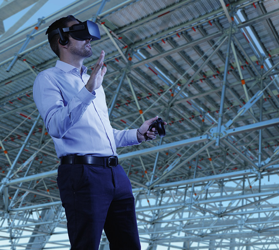 - Virtuelle Begehung von Gerüstkonstruktionen mit VR-Brille und optionale Anzeige im Desktop-Modus
