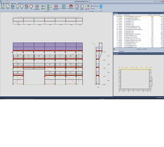 LayPLAN CLASSIC ist ein eigenständiges Planungsprogramm und erleichtert den Einstieg in die digitale Planung, indem sich vordefinierte Gerüstanwendungen automatisiert planen lassen: egal ob Rund- oder Fassadengerüste aus Blitz Gerüst, Raumgerüste und freistehende Gerüsttürme aus AllroundGerüst oder Konstruktionen mit temporären Überdachungen. Nach Eingabe der Eckdaten erhalten Gerüstersteller sekundenschnell einen Rüstvorschlag inklusive Verankerung, Aussteifung und Seitenschutz. Parallel wird dazu in Echtzeit eine detaillierte Materialliste ermittelt.