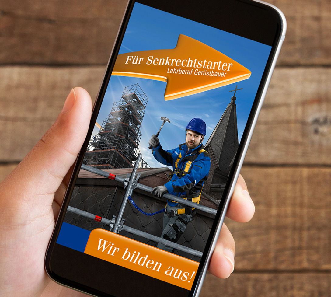 Um dieses Ziel mit unseren Kunden zu verwirklichen, haben wir eine Imagekampagne für das Gerüstbau-Handwerk ausgearbeitet und stellen Ihnen diese zur Verfügung. Denn nur durch eine gemeinsame flächendeckende und kontinuierliche Kommunikation können wir die Bekanntheit des Gerüstbau-Handwerks dauerhaft steigern.