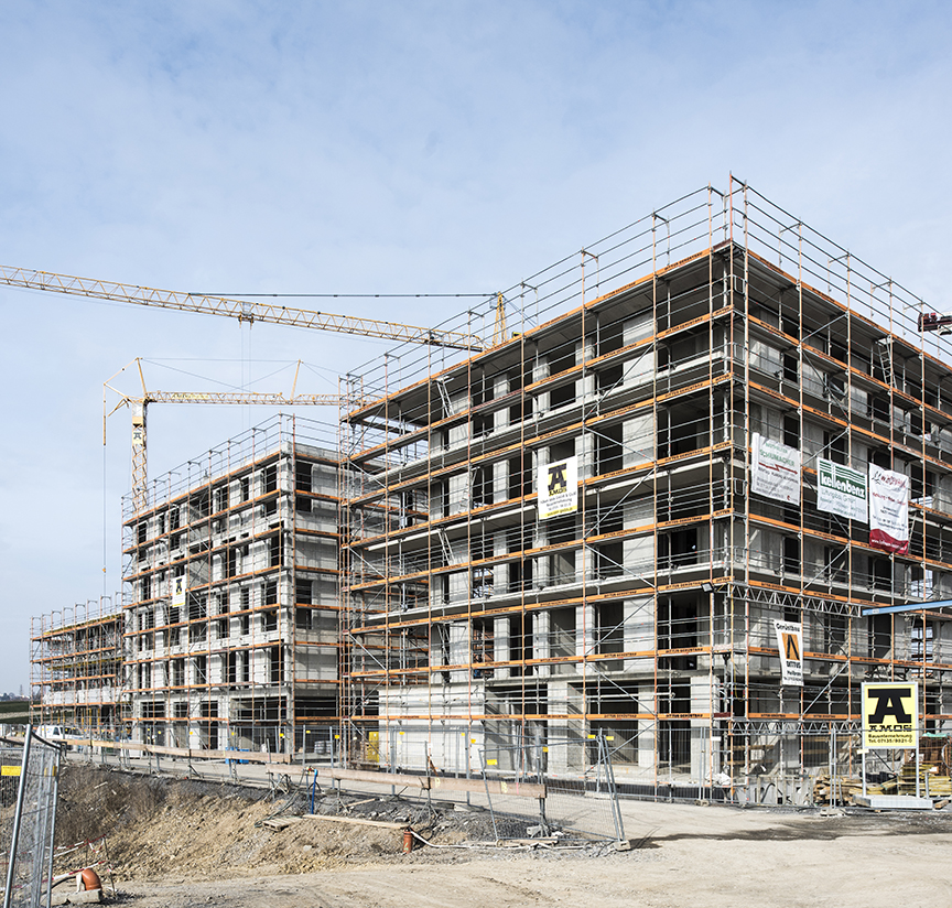 40 Hektar Ausstellungsfläche direkt am Neckar und eine großartige Stadtausstellung mit neuen, innovativen Wohnformen bilden dann das neue, zukunftweisende Stadtquartier Neckarbogen. Seit Mitte 2016 errichtet AMOS unter anderem als Baupartner des Heilbronner Projektentwicklers Kruck + Partner die Gebäude im Baufeld I, die allesamt aus den ausgezeichneten Entwürfen eines Architekturwettbewerbs hervorgegangen sind.