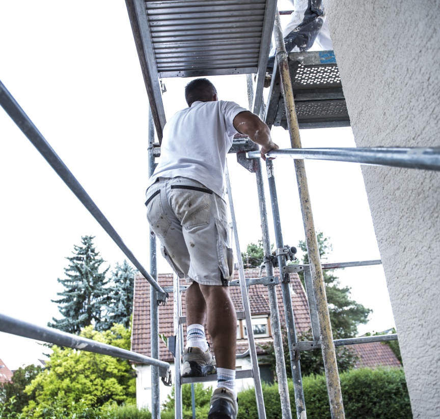 Für Handwerker wie die Firma Morlok ist Flexibilität sehr wichtig. Der Unternehmer setzt daher auf eigenes Blitz Gerüst, obwohl sein Hauptgeschäft Stukkateur- und Malerarbeiten sind. Umso wichtiger ist es, dass sich das Material einfach und logisch aufbauen lässt und die eingesetzten Gerüste den jeweiligen Vorschriften entsprechen. „Für uns ist der eigene Gerüstbau sinnvoll und lukrativ, weil wir so bei kleinen Projekten unabhängig und flexibel von anderen Dienstleistern, wie z.B. einem Gerüstbauer, agieren können“, so Morlok. „Das erhöht unsere Auslastung und ist so auch wirtschaftlich interessant.“ Darüber hinaus schickt der erfolgreiche Handwerker seine 30 Mitarbeiter regelmäßig auf Schulungen, um in Punkto Produktneuerungen, Effizienz und Arbeitssicherheit stets auf dem aktuellen Stand zu sein.