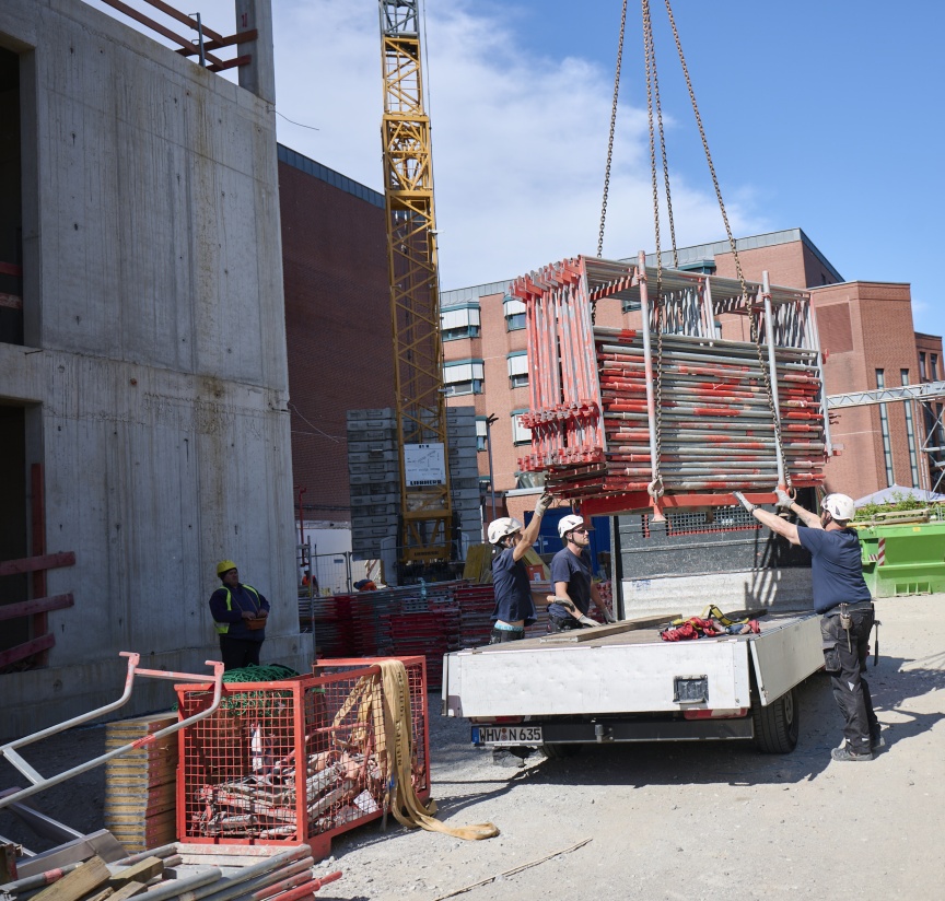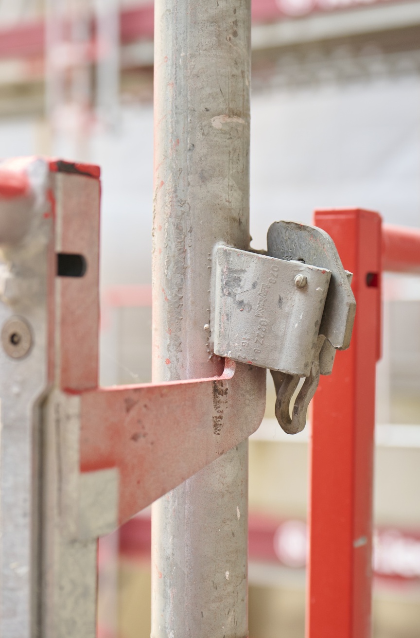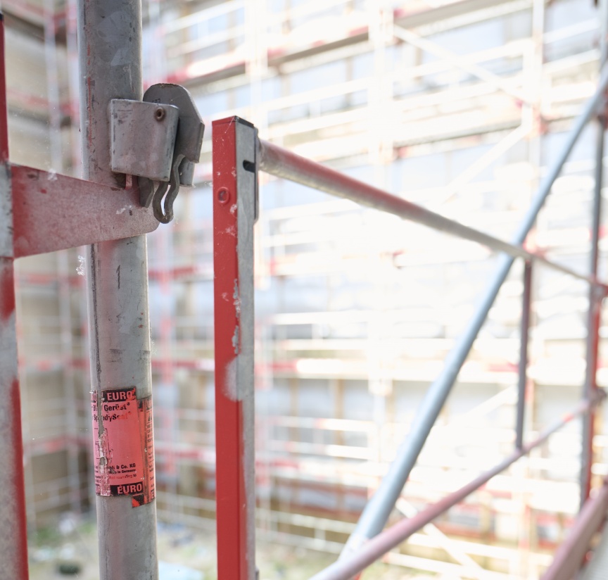 Wenn man genau hinschaut, ist es ja eigentlich nur konsequent, dass man beim Bau eines neuen Krankenhauses ganz besonders auf die körperliche Unversehrtheit der Arbeitenden achtet. Vielleicht ein Grund mehr, warum der beauftragte Gerüstbauer, die Nietiedt Gerüstbau GmbH aus Wilhelmshaven, für die über ca. 30.000 m2 Fassadengerüst bei den Neubauten am Oldenburger Klinikum auf das Blitz Gerüst von Layher mit systemintegrierten, vorlaufenden und TRBS konformen I-Geländern setzt. Prämisse war bei dessen Entwicklung, dass die Lösung in das Bestands Blitz Gerüst-Material passt und beim Aufbau keine Nachteile mit sich bring, um auch wirtschaftlich eine echte Alternative zu sein. Die 1-Personen-Montage der leichten, einteiligen Rahmenkonstruktion aus gesicherter Lage lässt sich problemlos in den Aufbauprozess integrieren und ist auch bei größeren Gerüstflächen eine sichere und effiziente Lösung.