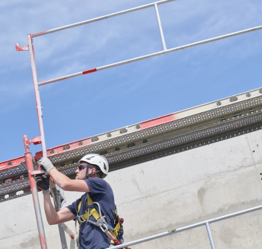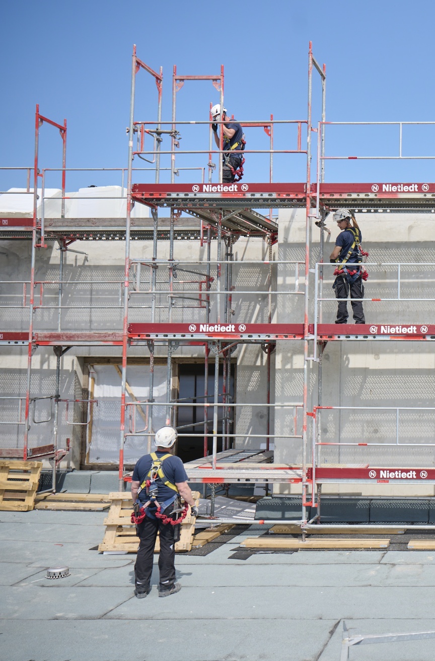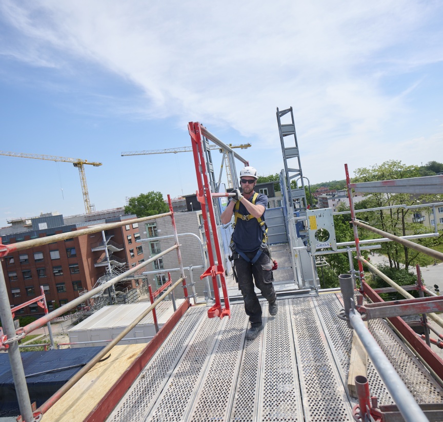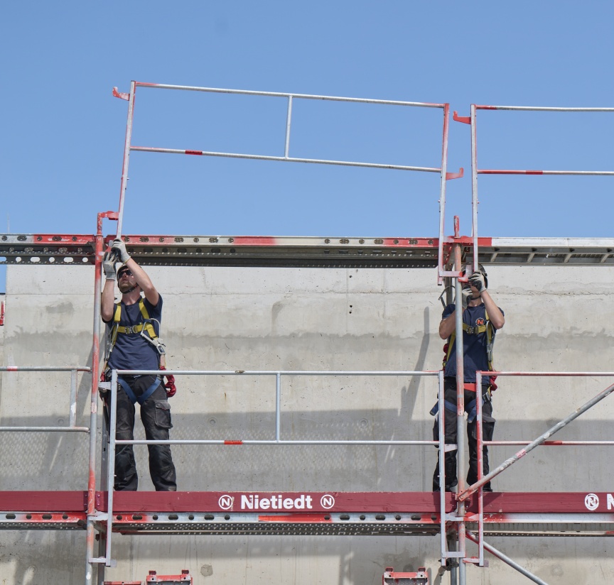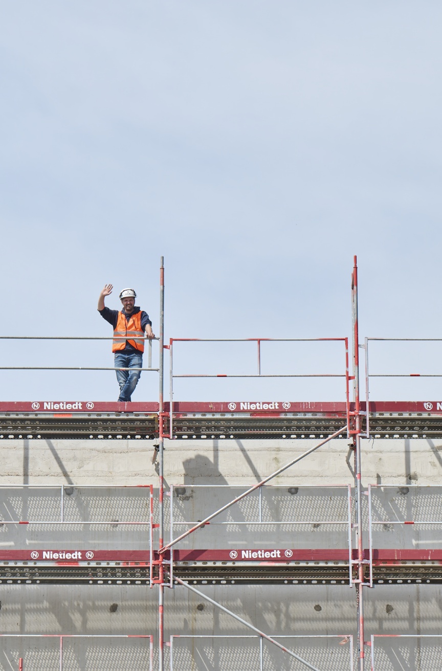 „Sicherheit wird in unserem Unternehmen großgeschrieben. Das ist kein reines Lippenbekenntnis, sondern wird von uns auf den Baustellen sehr konsequent kontrolliert. Deshalb war auch die Mitarbeit an der Entwicklung des I-Geländers für uns eine Selbstverständlichkeit, um die Sicherheit unserer Mitarbeitenden zu verbessern“, erläutert Tobias Hansjürgens, Geschäftsführer der Nietiedt Gerüstbau GmbH, die Philosophie des Unternehmens. „Zudem setzen wir bei unserer Arbeit auf höchste Qualitätsstandards und da kommt in puncto Gerüst natürlich der Marktführer Layher in Frage.“