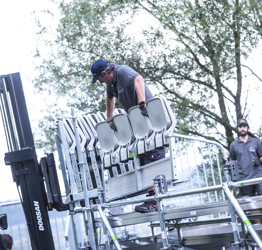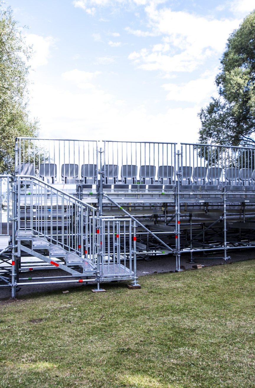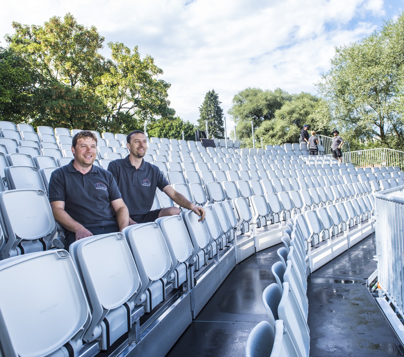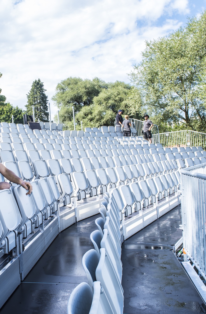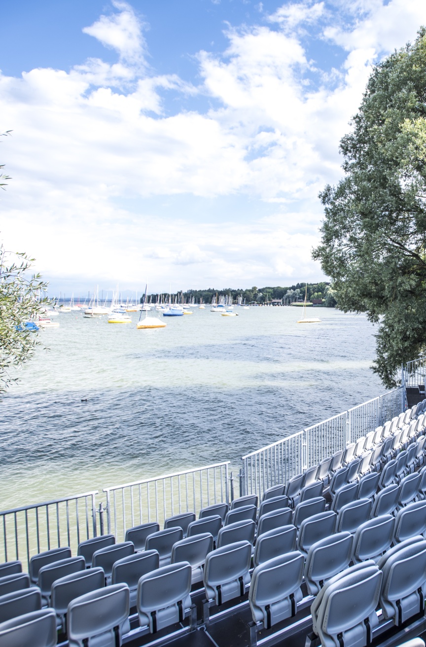 Wenn im Sommer 2018 auf der Seebühne in Utting am Ammersee das „Weiße Rössl“ gegeben wird, sitzen die knapp 350 Zuschauer auf einer neuen Tribüne mit Klappsitzen aus dem Hause Layher. Die Brüder und Geschäftsführer Stefan und Johannes Dankel vom veranstaltungstechnischen Dienstleister Opera GmbH & Co. KG haben damit ihr Angebotsportfolio, das bisher vor allem exklusive Zeltlösungen und Veranstaltungstechnik beinhaltete, mit dem Thema Tribünenbau komplettiert und zusammen mit den Spezialisten von Layher die besonderen Herausforderungen an dieser exponierten Location am Seeufer gut gelöst.