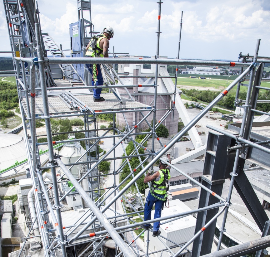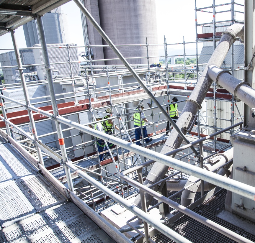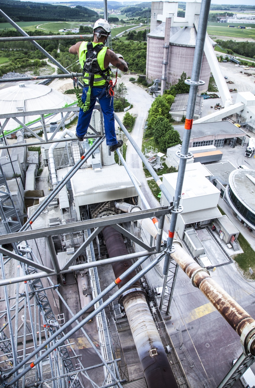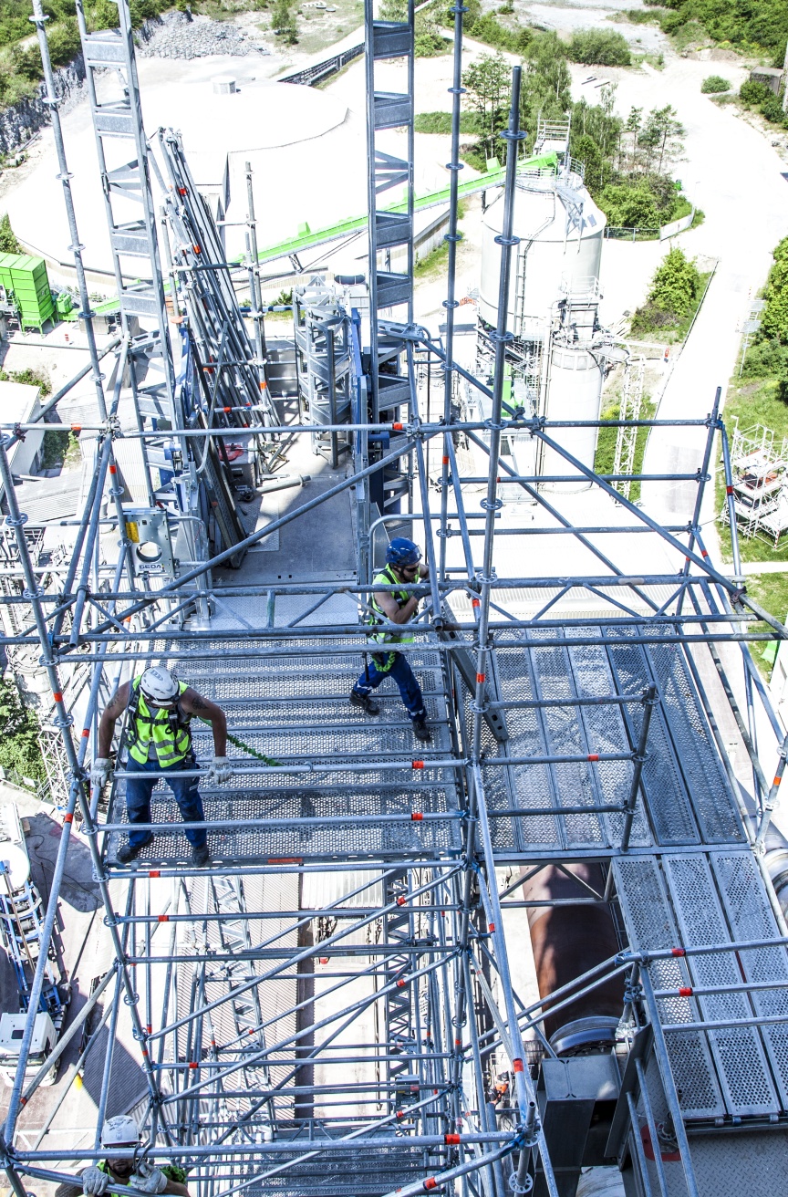 Der Betreiber des Zementwerks legt großen Wert auf Arbeitssicherheit und hat sich daher ganz bewusst für QuadreX und das Layher AllroundGerüst entschieden. In der Industrie verlässt man sich laut Darius Postweiler auf Layher Material, weil die vorgeschriebenen Sicherheitsanforderungen erfüllt sind und alle notwendigen Zertifizierungen vorliegen. Auch die Sicherheits- und Gesundheits-Koordinatoren der Auftraggeber sind mit der integrierten Sicherheit in den Layher Produkten vertraut.