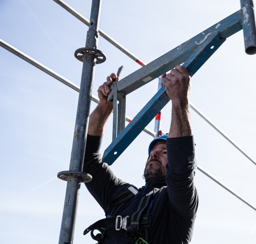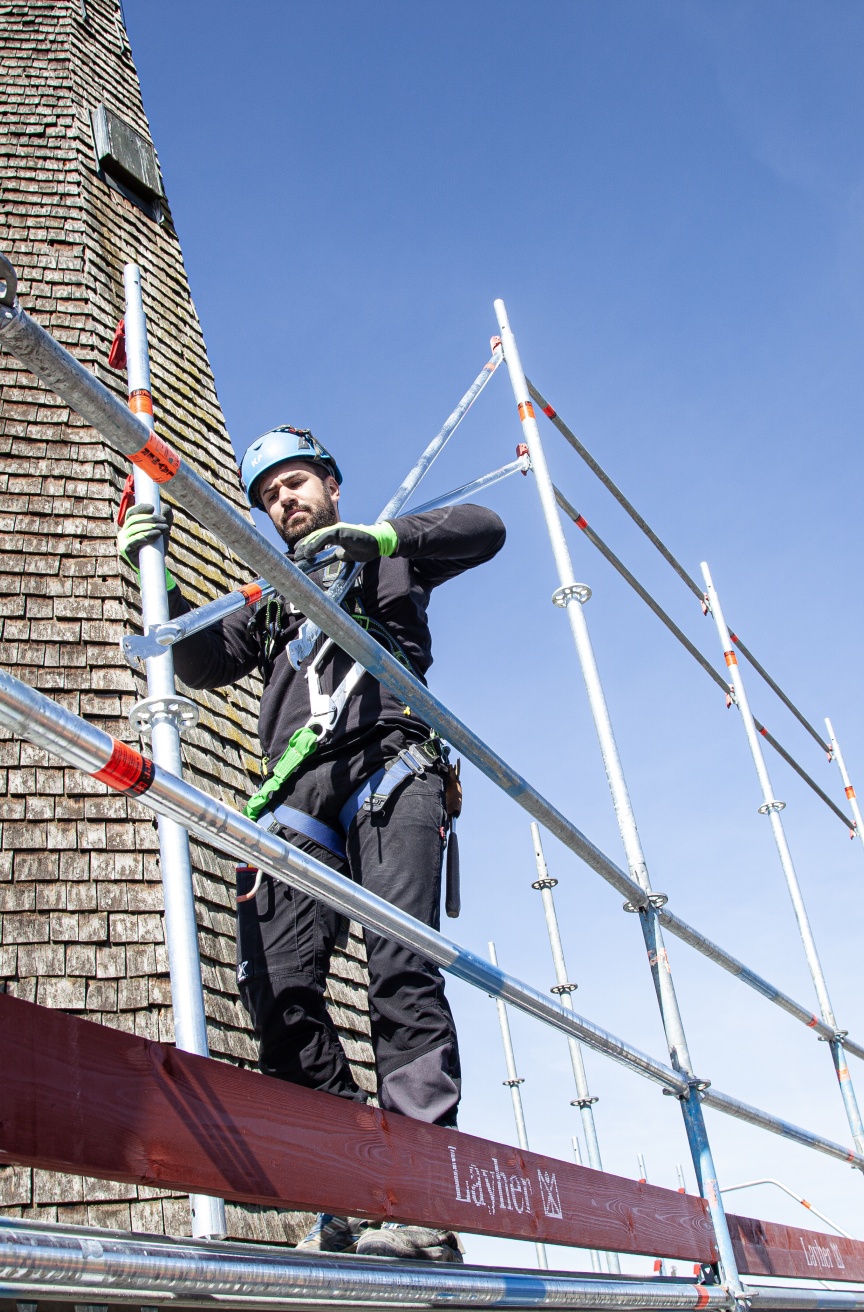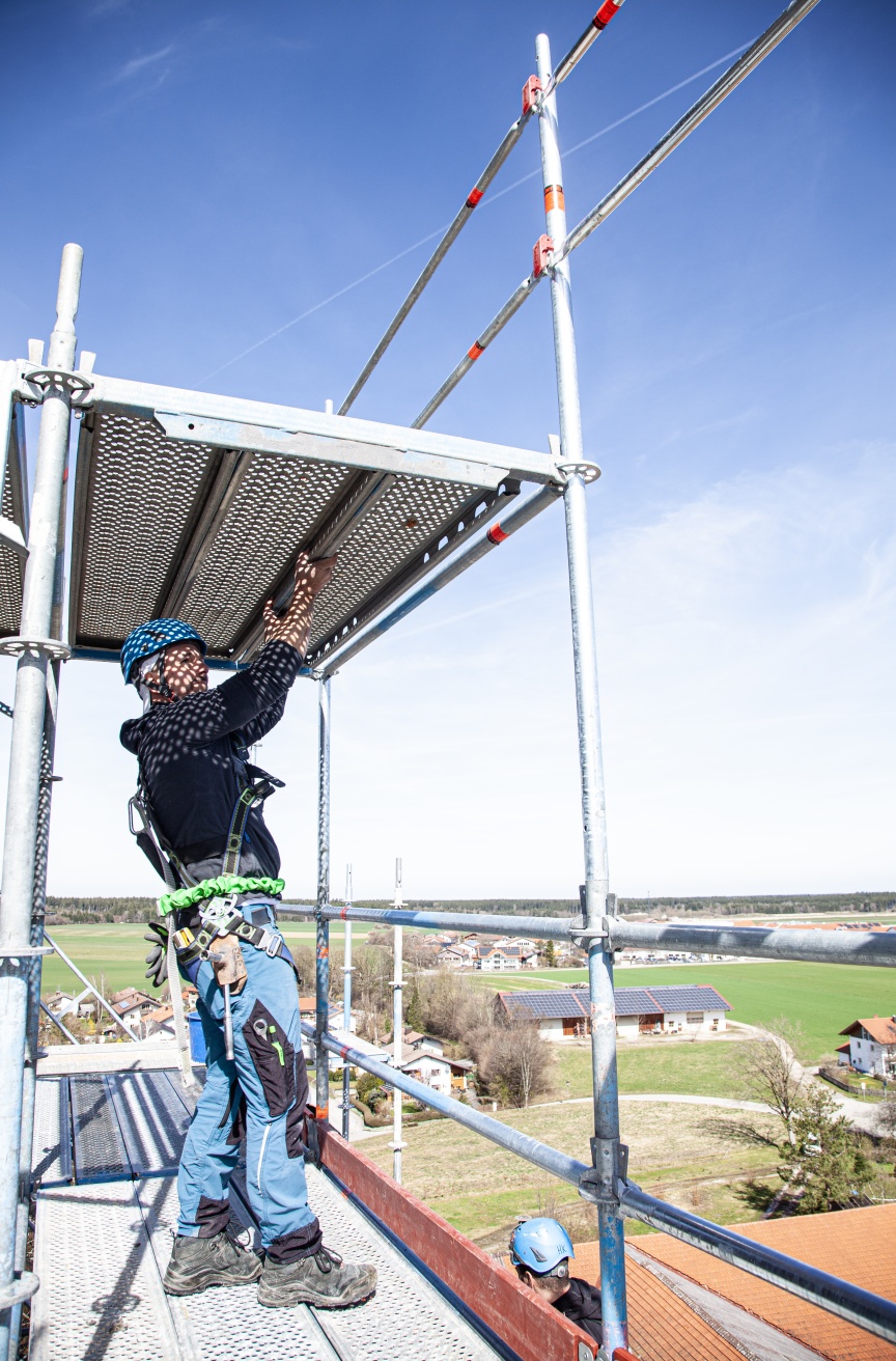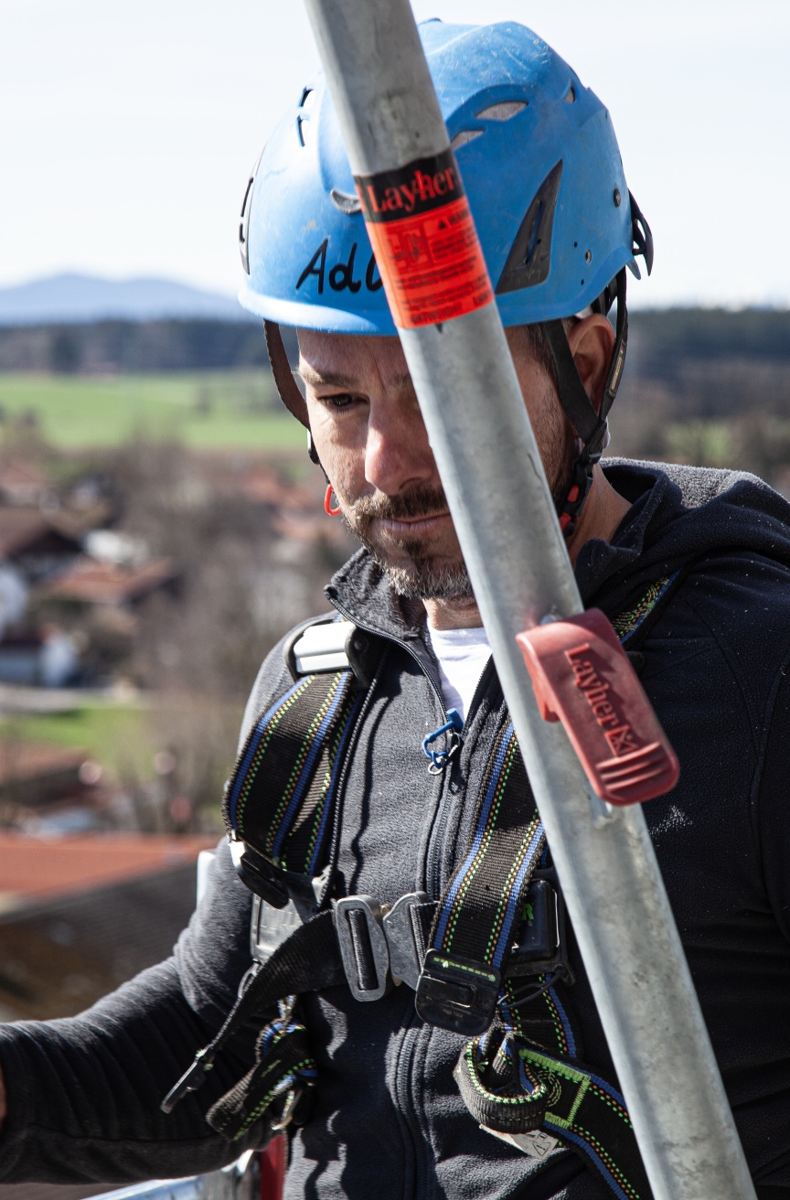 „Das AGS System lässt sich durch seine Nähe zum AllroundGerüst und dem einfachen Grundprinzip sehr unkompliziert montieren und ermöglicht einen sehr effizienten Aufbau bei größtmöglicher Sicherheit“, so Adrian Seuß, verantwortlicher Kolonnenführer bei Westermaier, der das Gerüst zusammen mit vier Kollegen in gut drei Wochen montiert. „Der AGS-Stiel hat zudem die gleichen Tragfähigkeitseigenschaften wie der Allround Stiel LW und ermöglicht mit seiner integrierten Allround Lochscheibe den Anschluss von Standard Allround Bauteilen und damit die Kombination mit unserem Bestandsmaterial“, ergänzt Franz Westermaier. „Damit ist für uns das AGS System eine intelligente Investition in unseren Layher Materialpark und damit in die Zukunft.“